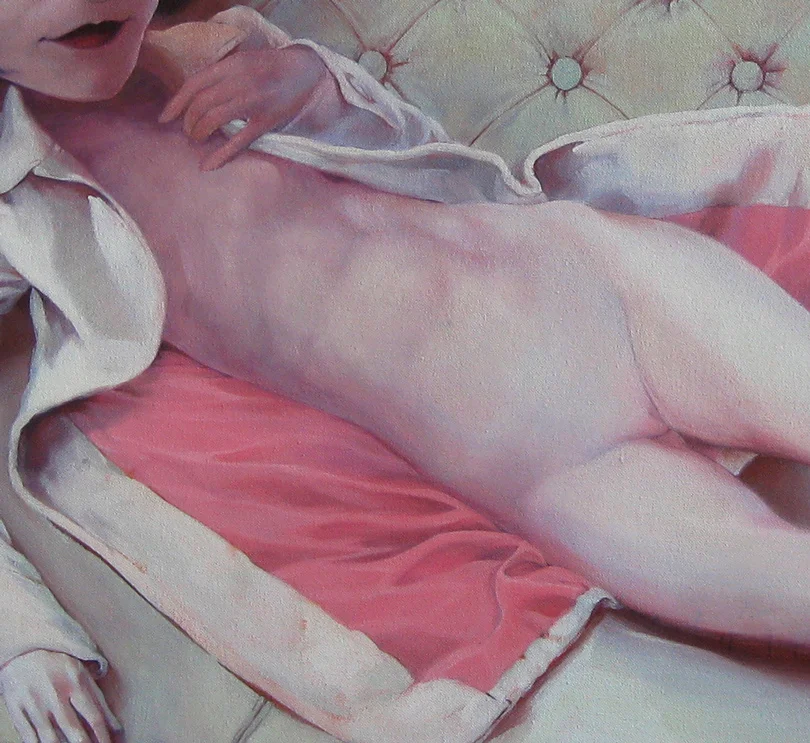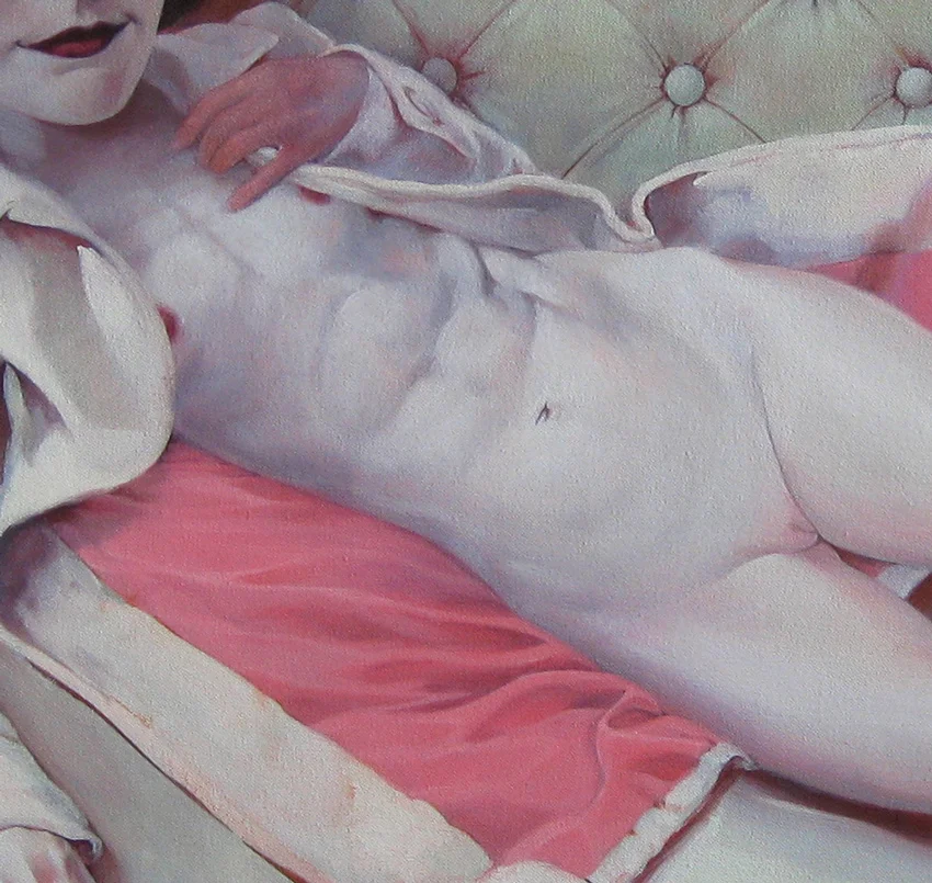 I had a terrific model and, Jebus bless her, she has a lovely super-flat stomach. Not a muscular, gym-rat stomach, but the stomach of a genetically gifted, naturally thin person who will never have to worry about what she eats. At this point, the viewer should be able to tell she looks like that from my painting.
